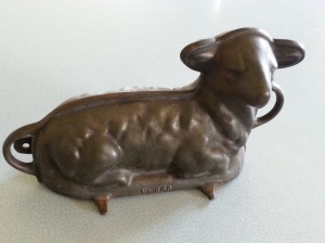 My earliest memories of Easter are dressing up for church. Mom usually made a new dress for me and my sisters, adding new patent leather shoes, white gloves, a purse, hat, and sometimes a corsage. Of course she “helped” prepare baskets for the Easter Bunny to deliver and we always colored eggs. Whether we hosted the Easter dinner or it was held at my grandparents, Mom was involved in the cooking and it wouldn’t have been complete without her lamb cake. I have since inherited her cast iron lamb mold and taken on that task for my own family.